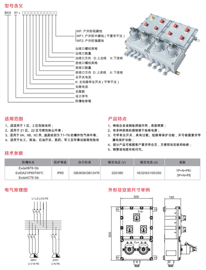 鋁制防爆檢修箱采用鋁合金材質(zhì)壓鑄而成,表面高壓靜電噴塑,外形美觀,防爆檢修箱屬于防爆配電箱的一種,可作為動力、照明、檢修之用,防爆檢修箱表面開關(guān)手柄操作,根據(jù)客戶要求定制而成,防爆箱采用復(fù)合型結(jié)構(gòu),進(jìn)出線端子箱,隔爆型防爆箱內(nèi)裝高分段小型斷路器或者塑殼開關(guān),漏電開關(guān)等,增安型防爆箱內(nèi)裝接線端子,防爆插座等,不銹鋼緊固件,樂清益安防爆電器科技有限公司。